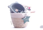 - Cestita de algodón trenzado: Ideal para organizar sus cositas o decorar la habitación.